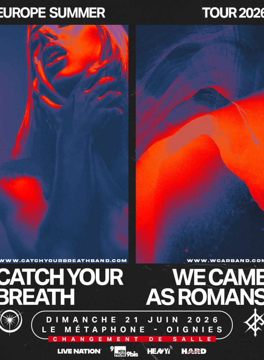 En raison de l’indisponibilité de la salle, le concert de Catch Your Breath et We Came As Romans initialement prévu dimanche 21 juin au Splendid de Lille est déplacé au Métaphone à Oignies, à la même date. Les billets achetés restent valables.