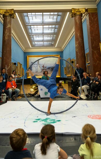 Quelques coups de ciseaux, un point de colle-ci, quelques paillettes et un peu de couleurs. Voilà ton mobile de papier qui prend vie. Viens créer en famille ton mobile et imagine une tenue de travail et d’artiste à ta façon !